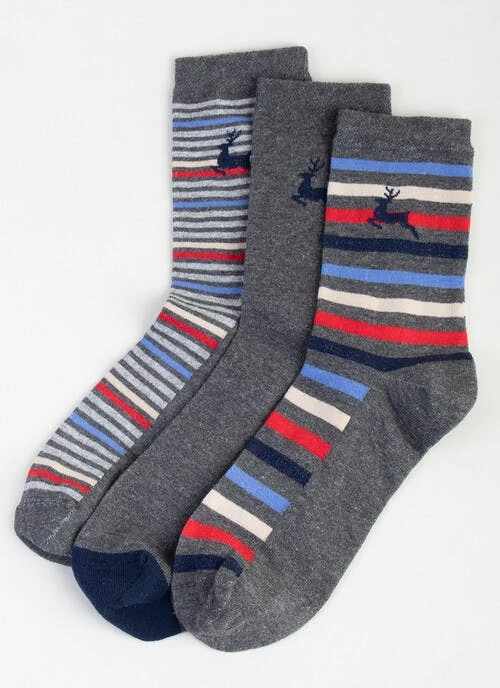 This box of cotton rich socks by James Pringle makes a lovely gift. It includes three designs featuring a stag and a stripe design. Perfect for the country gent.