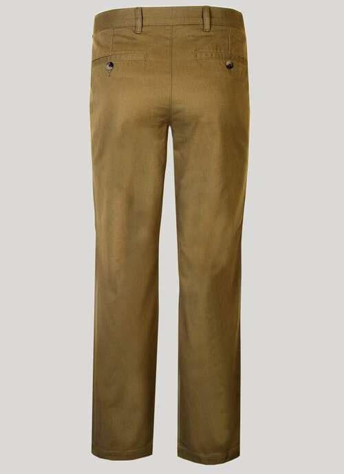 “Our flat front Chinos by James Pringle have an adjustable waist for ease of fit and comfort. This classic style has side pockets and back pockets. Available in a wide range of new seasons colours.”
