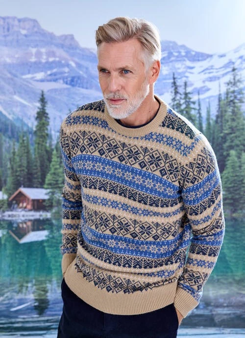 “Our jacquard jumper by James Pringle is the perfect way to elevate your wardrobe whilst keeping cosy. Smart and practical, it’s ideal for layering over your favourite shirt.”