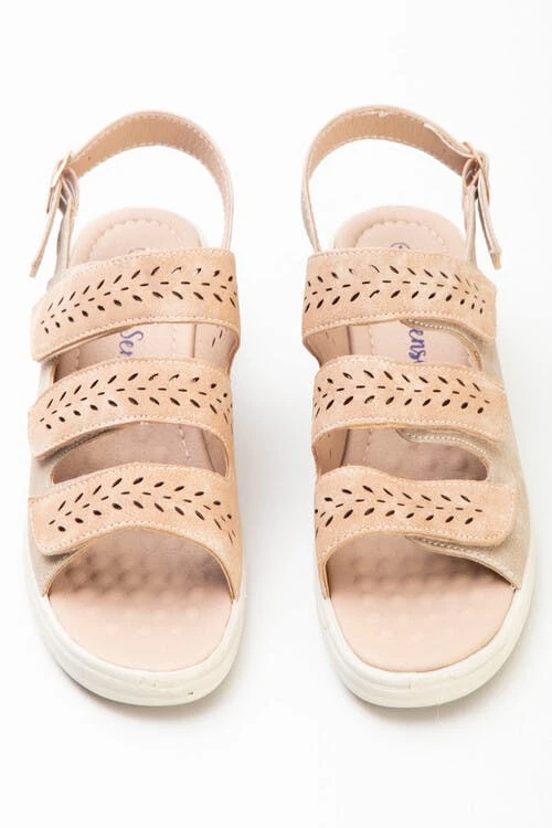 Open toe summer beige sandal in blue, great for holidays or sunny days at home, with easy touch and close fastening for an adjustable fit.