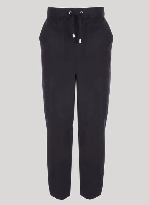 These casual trousers have an elasticated waistband, to create a smooth, flattering fit. With an easy to wear pull on design, handy front pockets, and a tie-detail, they are perfect for teaming with your favourite tee for everyday wear. Available in other lengths.