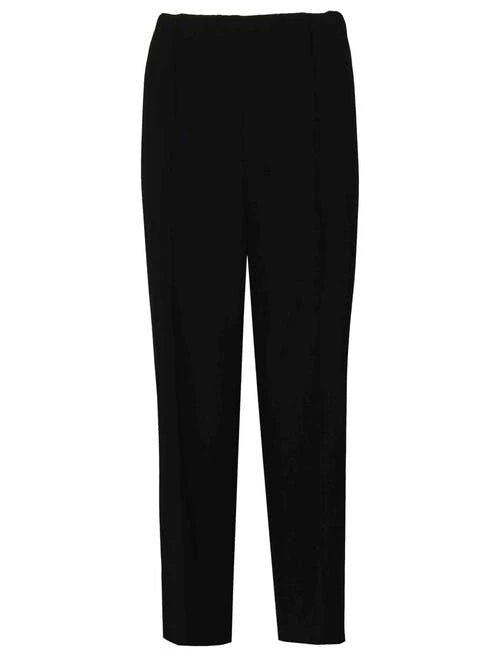 These comfort fit trousers create a smooth, flattering fit. With an easy to wear pull on design, and an elasticated waist, they are perfect for teaming with a pretty blouse for an effortless look. Available in navy or black.