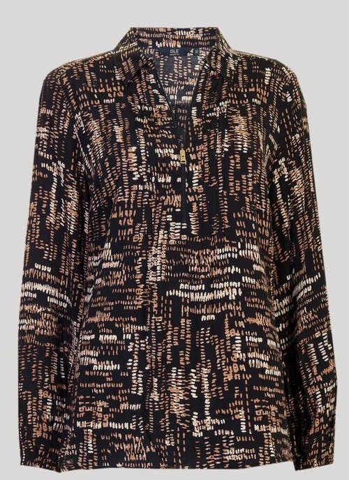 This flattering print blouse from Isle Collection is a great addition to your wardrobe. Featuring a trophy collar, zip detail and elasticated cuffs, you really can’t go wrong. Crafted from a lovely viscose, simply team with your favourite jeans for an easy everyday outfit.