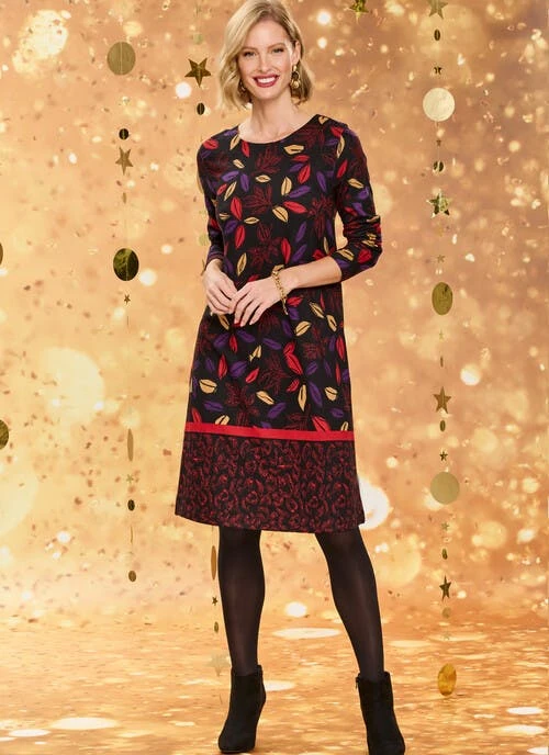 Elevate your winter wardrobe with this printed dress from Isle This versatile piece combines comfort and style effortlessly and is crafted from a soft jersey. Get ready to embrace the season in fashion-forward elegance.