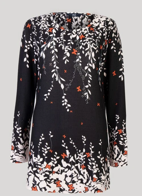 Effortlessly stylish, this contemporary print top is a must have for your wardrobe. The round neck and nature-inspired border print make it easy to wear, yet suitable for any occasion. Made from a brushed jersey, making it the perfect piece for cooler days.