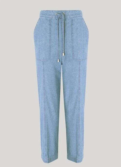 These casual trousers have an elasticated waistband, to create a smooth, flattering fit. With an easy to wear pull on design, handy front pockets, and a tie-detail, they are perfect for teaming with your favourite tee for everyday wear. Available in other lengths.
