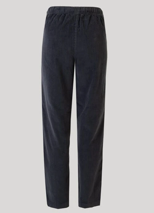 These soft needlecord casual trousers have a fully elasticated waist to create a relaxed, flattering fit. With an easy to wear pull on design, handy front pockets and a tie-detail, they are perfect for teaming with your favourite tee for everyday wear.