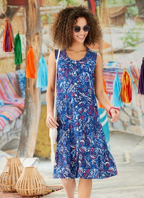 Effortlessly stylish, this contemporary Aztec print dress is a must have for your wardrobe. Featruing crochet shoulder detailing and a tierd skirt designed to flatter this style is easy to wear yet suitable for any occasion.
