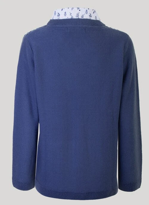 This textured crew neck jumper by Isle has a mock 100% cotton shirt insert giving you a layered look. Available in the new seasons colours.