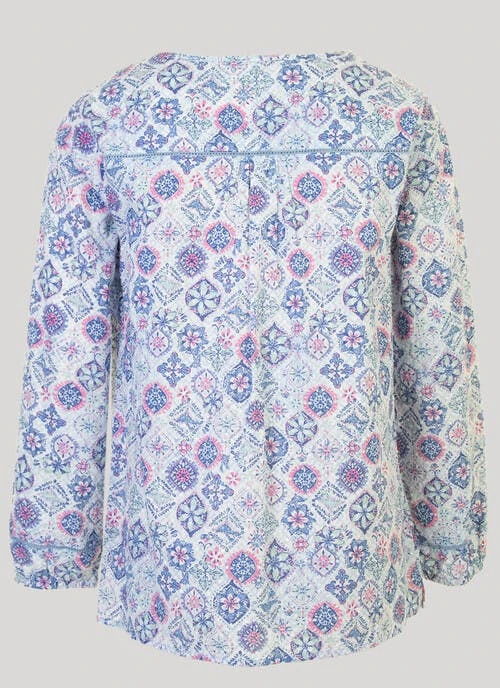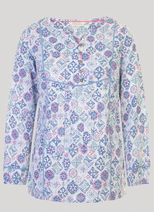 This blue printed blouse by Country Rose is a must have piece for your wardrobe. The delicate cotton dobby fabric is lightweight and breathable, perfect for warmer days. Pair with your favourite cropped jeggings or shorts for an easy summer look.