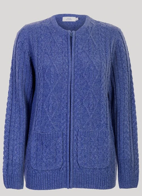 Cardigan with a rounded neckline and centre front zip. Cosy and textured two-tone boucle yarn, comfortable easy fit. Soft warm touch. Front Pockets. A great layering style to coordinate with Honor Millburn Collection trousers and skirts.