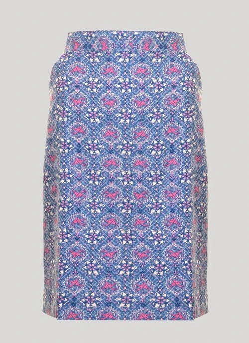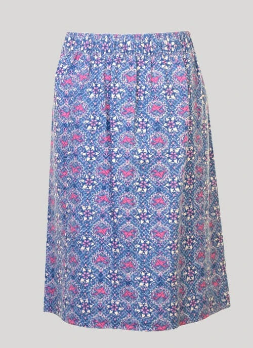 This pull on skirt from Country Rose stands out from the crowd with its stunning tile print. The long cut, side pockets and elasticated back make this design extra flattering, yet versatile. Style with a bright knit and finish your look with sandals for the perfect outfit.