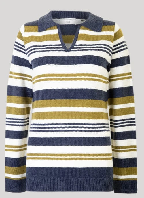 This knit jumper by Isle is the perfect style statement for cooler days. With a flattering V Neck, collar and wear with jeans or jeggings for a classic look.