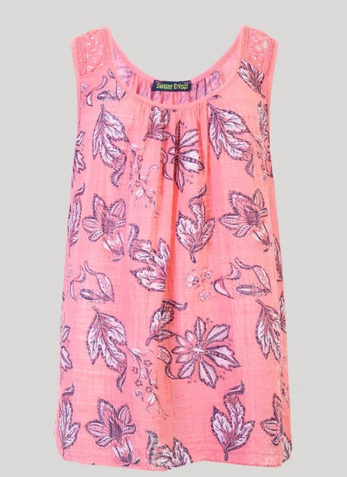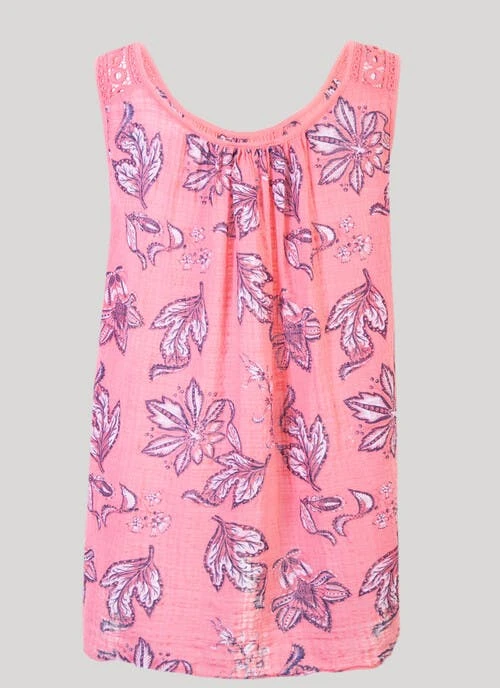 Light and breezy this top featured delicate crochet detailing on the shoulders and is designed for a floaty relaxed fit. Simply pair with your favourite denim for an effortless outfit.