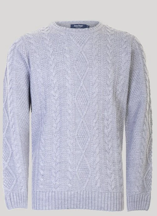 This crew neck Aran cable knit jumper by James Pringle a classic that looks great whether worn with chinos or jeans and makes a smart way to add a layer of warmth