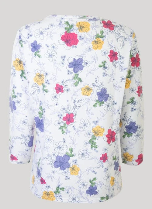 Top with rounded neckline, 3/4 Sleeve and a delicate pearl trim. This comfortable and smart top is useful for that special occasion or a weekend with friends. Coordinate with Honor Millburn Collection Trouser and Skirts.