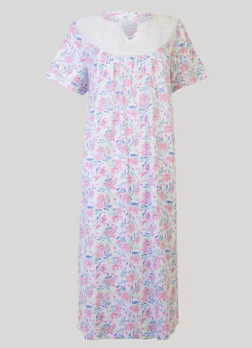 Made from pure cotton with a pretty woven yoke neck, this printed nightie by Isle, comes in a longer length and is soft and breathable for your comfort.