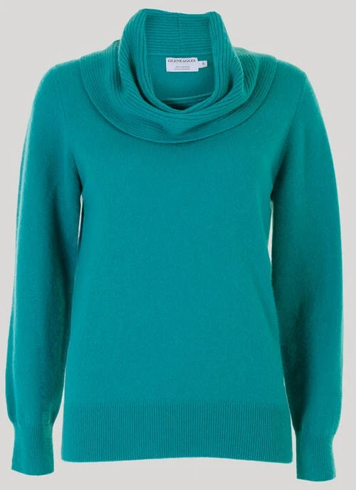 Classic cowl neck jumper by Gleneagles of Scotland in 100% pure luxurious Cashmere. This jumper is the ultimate in practical luxury and style and is machine washable.