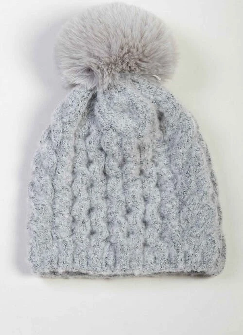 Get ready for the colder months with this cosy bobble hat, featuring a cable knit design and a faux fur pom pom.