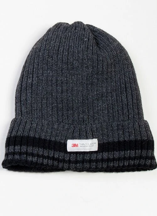 Keep warm with this knitted Thinsulate stripe hat featuring a turn up for extra warmth round the ears. 3M Thinsulate insulated hat is fully lined. Available in three colours, Black , Grey , Navy , and Green