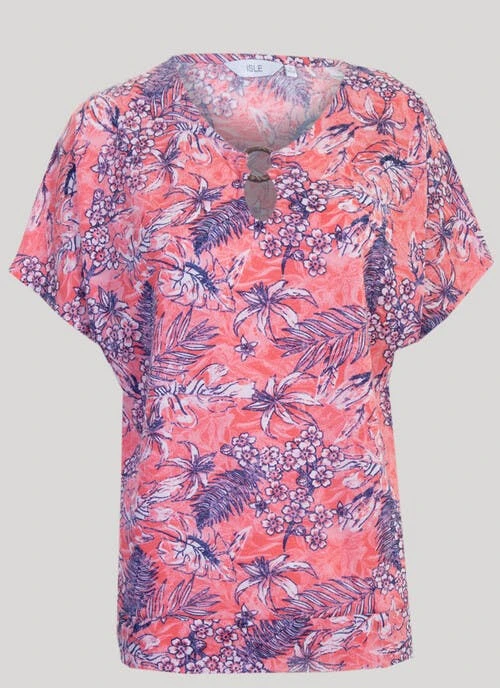 Keep it casual in this notch neck t shirt by Isle. Featuring a stylish coconut ring, this style has been designed with a contemporary print, adding the finishing touch to any outfit.