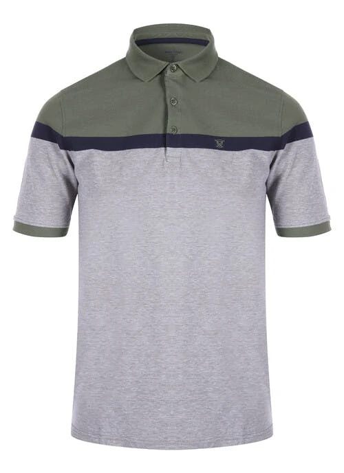 This panel stripe polo shirt by James Pringle has a knitted collar and three button fastening.