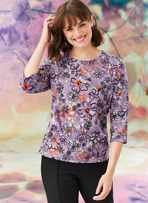 Feminine Top with pretty necklace included, styled with a soft rounded neckline and three quarter sleeve. Comfortable Fit and Soft-touch fabric in an attractive modern abstract floral print. An excellent choice to team with Honor Millburn Collection trousers and skirts to refresh your seasonal wardrobe.