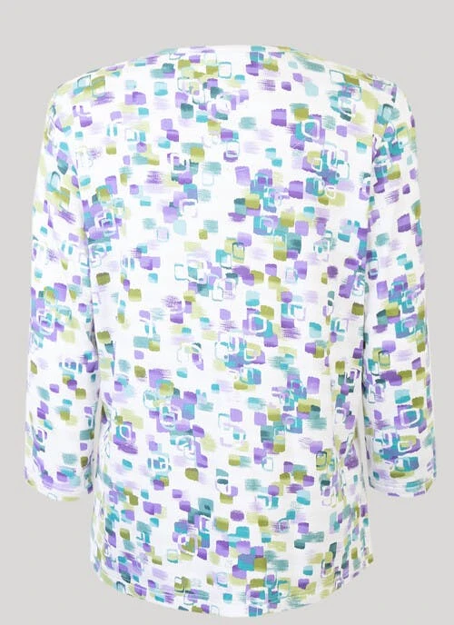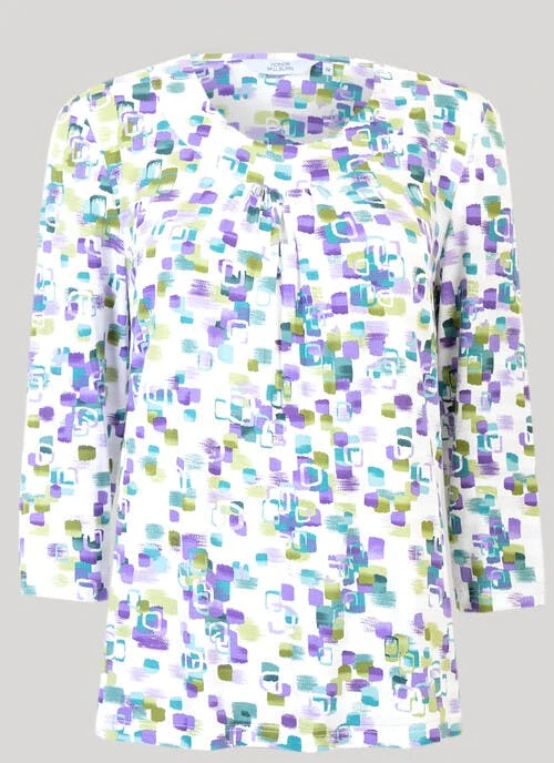 Striking print top, with pretty keyhole front neckline. Elegant 3/4 sleeve and soft rounded neck shape. Comfortable warm touch fabric and fit. Team with Honor Millburn trousers and skirts for a lovely fresh new wardrobe addition.