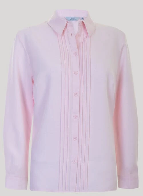 Classic button-front blouse featuring a smart collar, cuffs with button, and front pin-tucks. A comfortable and warm fit in twill cotton-blend fabric. A smart wardrobe addition to be coordinated with Honor Millburn Collection trousers and skirts.
