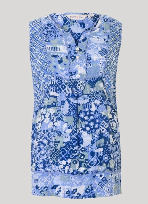 Refresh your wardrobe with this pretty mixed print top from Country Rose. With it’s lightweight fabric, shell buttons and charming crochet trims, what’s not to love? Style with denim for the perfect casual look.