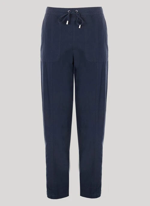 These casual trousers have an elasticated waistband, to create a smooth, flattering fit. With an easy to wear pull on design, handy front pockets, and a tie-detail, they are perfect for teaming with your favourite tee for everyday wear. Available in other lengths.