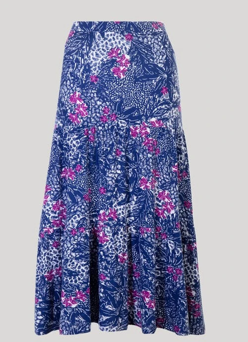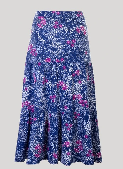 This pull on skirt from Isle Collection stands out from the crowd. The soft jersey fabric, tiered skirt, and elasticated waistband make this design extra flattering yet versatile. Style with a simple tee and finish your look with sandals for the perfect outfit.