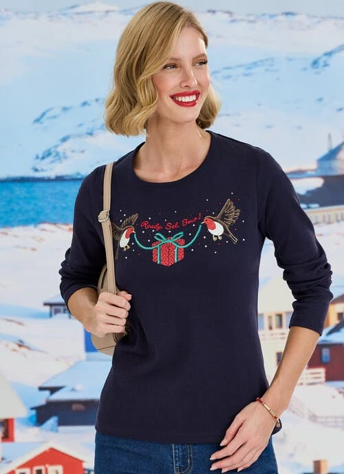 Add some festive cheer to your wardrobe with this robin embellished top by Isle. Designed in pure cotton for your comfort, this fun style is a must have this season.
