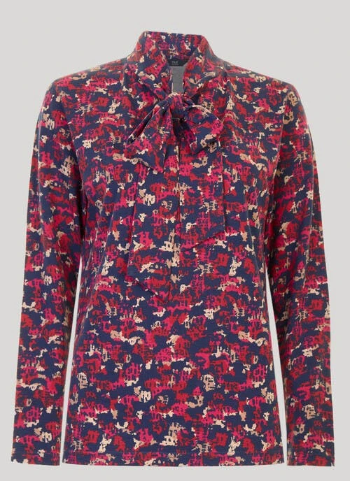Elevate your basics with this easy print top from Isle Collection. Featuring a tie neck and crafted from a super smooth jersey, it’s sure to become a central piece in your wardrobe this season.