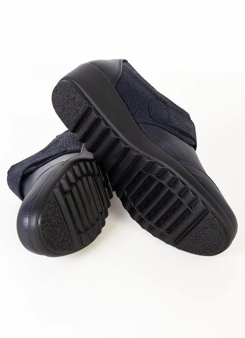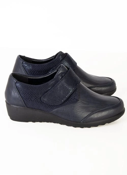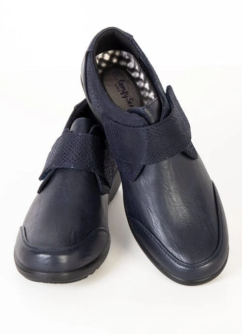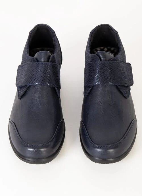 A classic style shoe with touch fastening with snake detail. These shoes feature a padded comfort insole.