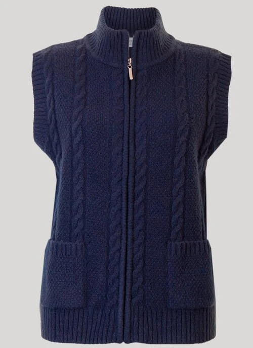 Knitted Waistcoat styled in a turtle neck styling. Functional front zipper Handy pockets in a decorative pattern. Comfortable fit in a soft touch yarn. Coordinate with Honor Millburn Collection tops, trousers, skirts and other knitwear for a layer of warmth and a fresh look for the new season