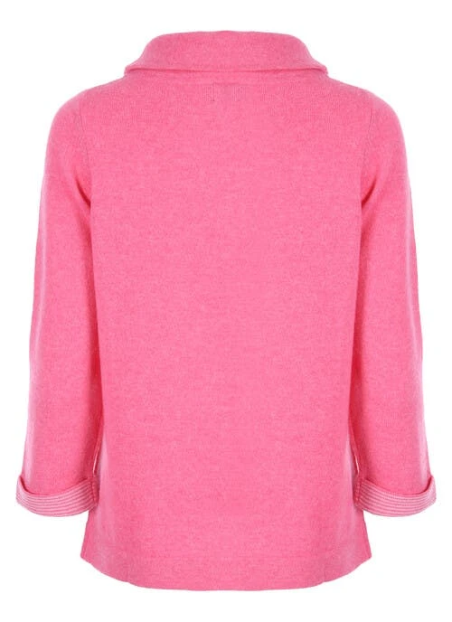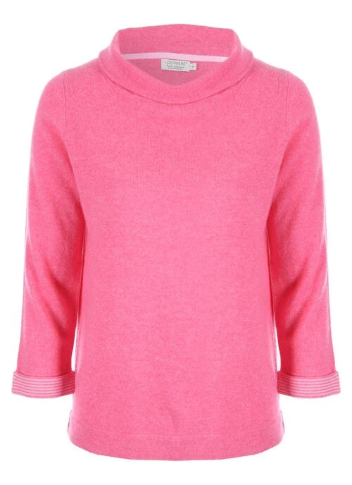 a feminine Bardot neck, three quarter sleeves, fully machine washable and a feminine new season colour this jumper is the ultimate in practical luxury and style.
