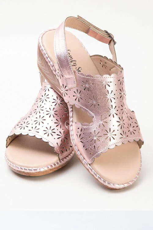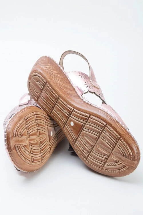 Pink sparkle wedge sandal, great for holidays or sunny days at home, with a low wedge and lightweight sole will give all day long comfort.