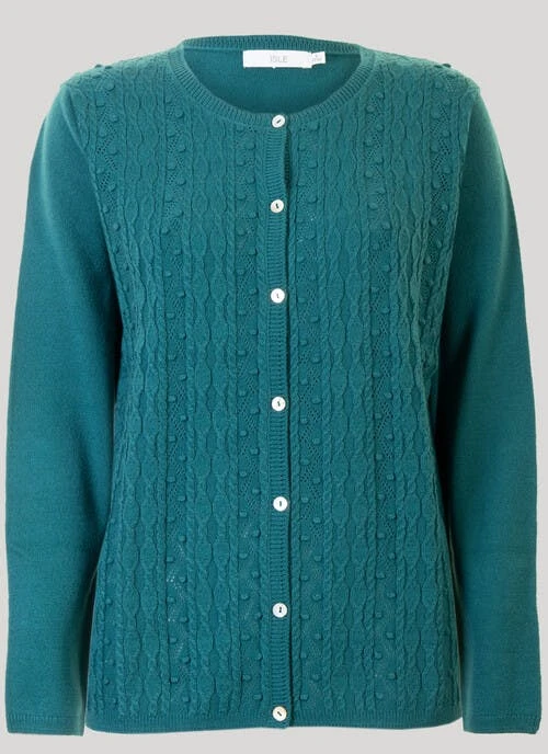 Add a smart layer to your outfit with this lightweight crew neck cardigan by Isle. The pretty pointelle knit has a button front and rib hem and cuffs for your comfort.