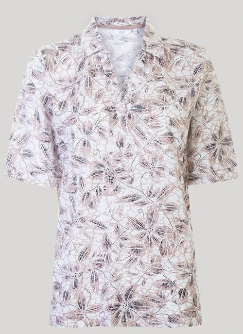 Feel good in this print polo shirt by Isle. Designed in a regular fit with an open collar, this linen blend polo flatters the body for effortless dressing.