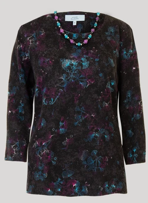 Elegant top with pretty a necklace included. Styled with a comfortable fit, soft-touch jersey fabric in attractive modern abstract floral print. Team with Honor Millburn Collection trousers and skirts to refresh your seasonal wardrobe.