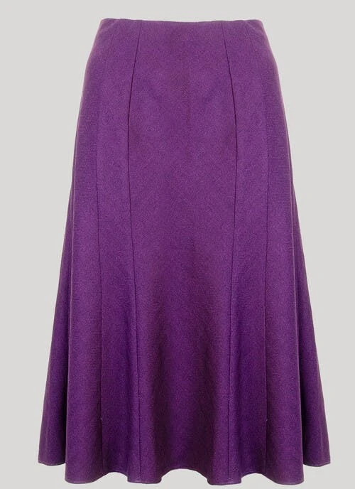 Skirt, fully lined, waist elastication for maximum comfort and fit. Subtle texture two tone fabric, ten panels styling, with attractive flare at the hem. A smart addition to your wardrobe. Coordinate with Honor Millburn Collection items for a fresh new season look.