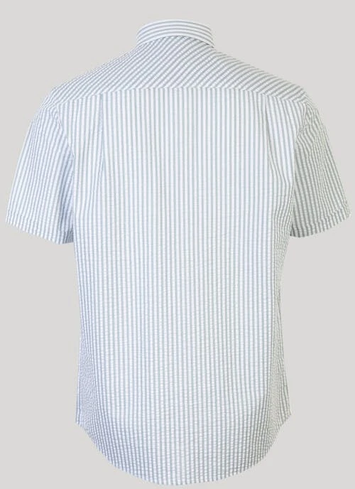 This seersucker stripe shirt by James Pringle is in an easy-to-iron fabric. Wear buttoned to neck or open with a t shirt for a relaxed weekend look.