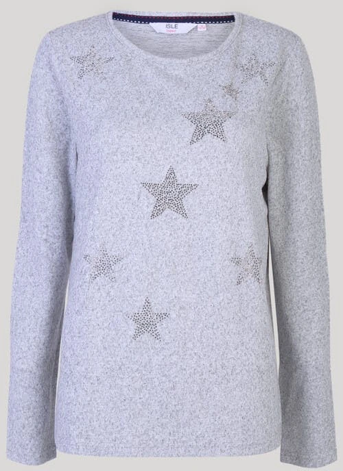 Keep it casual with this printed top from Isle Loungewear. Featuring round neck, stylish star detailing and made from a super soft brushed jersey, it’s sure to become a central piece in your basic wardrobe this season. Team with jeggings or joggers for a casual feel