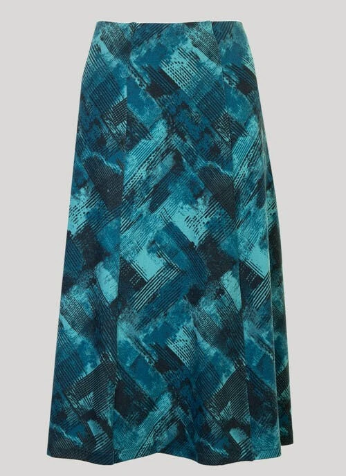 Skirt with comfort elasticated non cling waist. 6 Panels. Made in printed brushed fabric and fully lined. Beautiful abstract print in warm berry shades. An excellent wardrobe addition for useful coordinating options to match with Honor Millburn Tops and Tees.