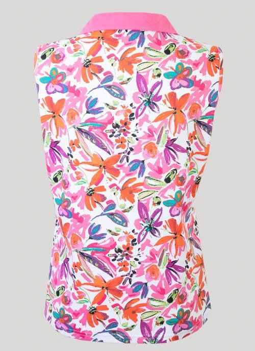 Feel good in this sleeveless print polo shirt by Isle. Designed in a regular fit with button detailing and polo collar, the pure cotton fabric flatters the body for effortless dressing.