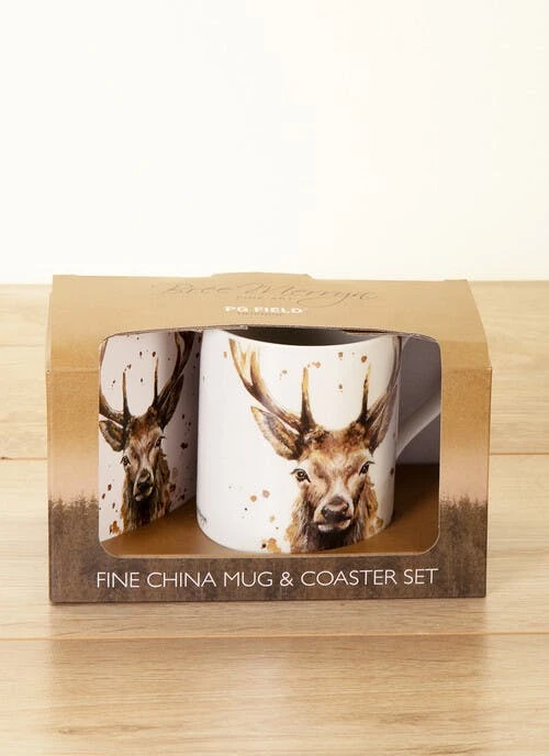A Men’s PG Field Boxed Stag Mug and Coaster, Ideal For A Christmas Gift.