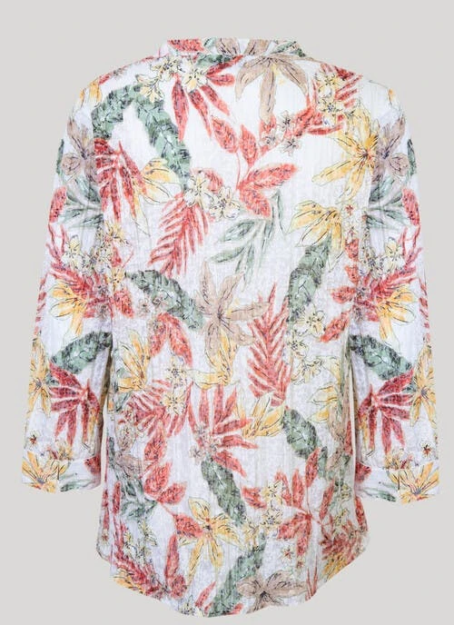 This striking floral burnout print blouse from Isle is the perfect piece for your summer wardrobe. Featuring tab up sleeves and crinkle fabric base, you really can’t go wrong with this effortless style. Simply pair with denim to complete the look.