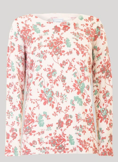 Feminine Jumper with rounded neckline and long sleeves. Knitted in comfortable viscose mix yarn with lovely autumn all over print. Team with Honor Millburn Collection Trousers and Skirts for a flattering new season look.
