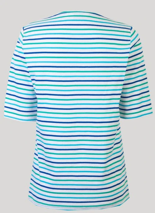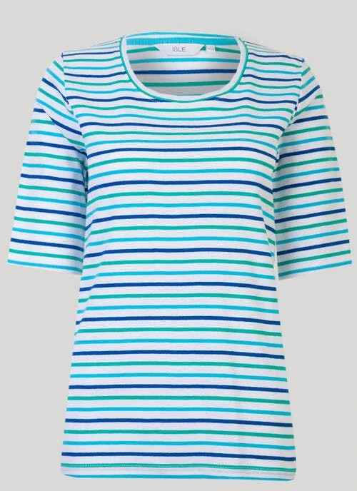 Ideal for warmer days, this striped t shirt by Isle is made from pure cotton for your comfort. Designed with a flattering crew neck and fresh stripe layout, wear with jeans or crops for a casual look.